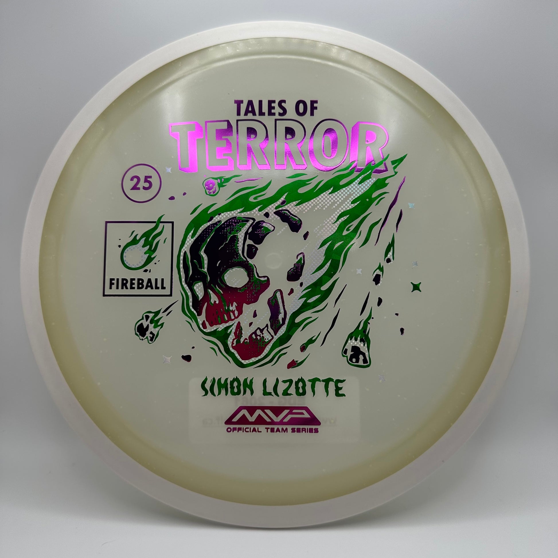 2025 Halloween Special Edition: Our first release in our new Particle Eclipse plastic is the Particle Eclipse Fireball! Hurtling towards a catastrophic fate in this stamp brought to us by Matthew Jorde, this flaming doom has never looked better. Made with our industry-leading Eclipse plastic, this new blend of glow with colorful particles inside accentuates the otherworldly feel of this space faring skull about to rain down upon us. Equally suited to backhands and forehands, the Fireball is an overstable driver perfect for wind fighting and situations when you need the dependable hook of its high fade for accurate placement shots. Wreak havoc on the course by grabbing your own Particle Eclipse Fireball today!