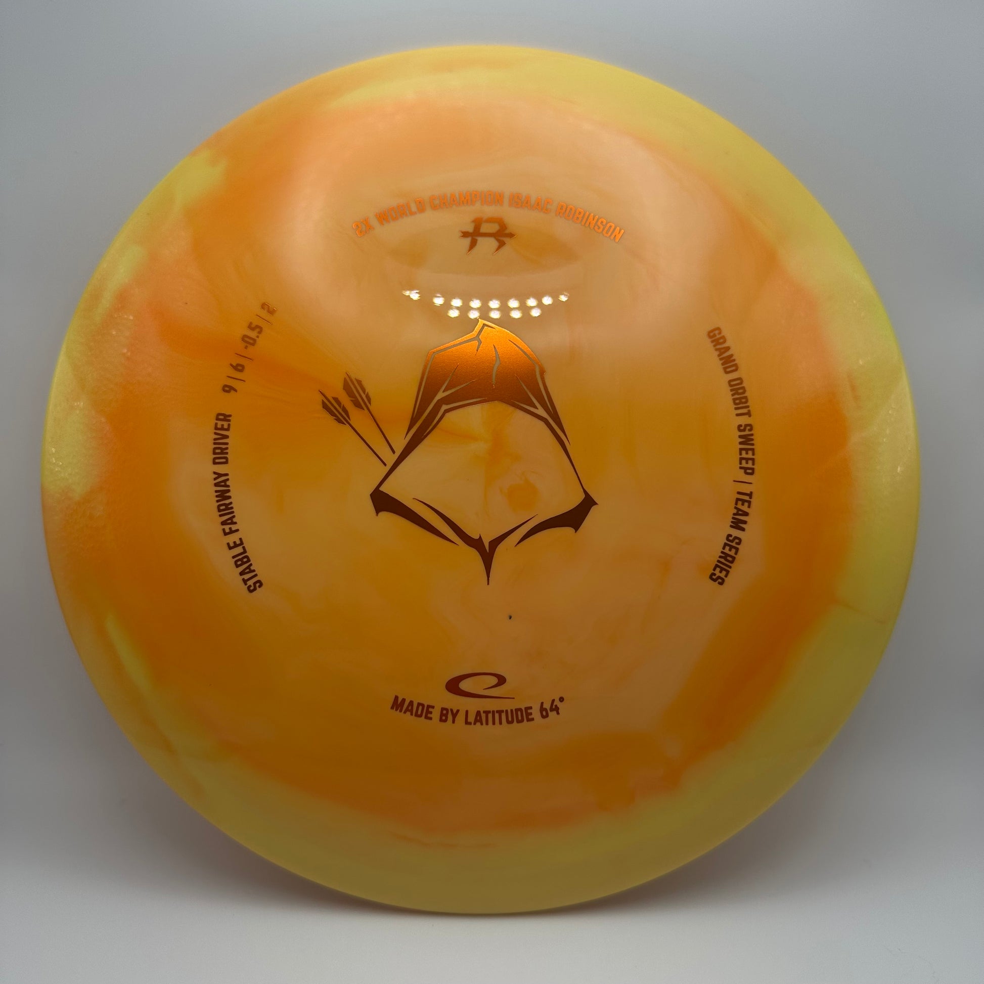 Crafted in Grand Orbit plastic, this edition features a premium feel, exceptional grip, and long-lasting durability — all wrapped in a striking orbit effect. The design continues the visual legacy of Isaac Robinson, showcasing a new take on the archer motif that we have seen on his previous Team Series discs. The Grand Orbit Sweep is available in a variety of striking color combinations.