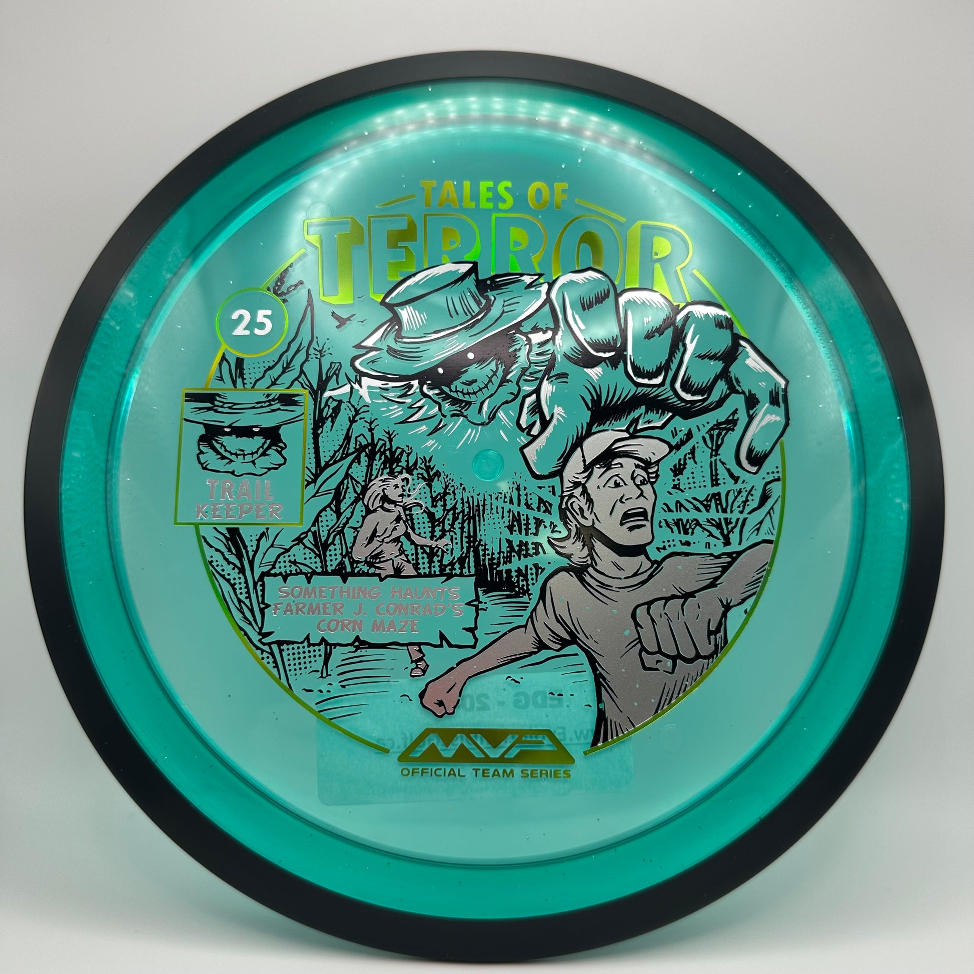 James Conrad 2025 Halloween Special Edition: The highly requested fan favorite Proton Trail has returned! Green C Studio adorns this disc with a glimpse of the Trail Keeper haunting Conrad’s Corn Maze, a classic horror story. Excelling in hyzer-flip drives, turnovers, and straight shots, the Trail has become one of the most popular drivers in the MVP lineup that throwers of all power levels will find significant use for.